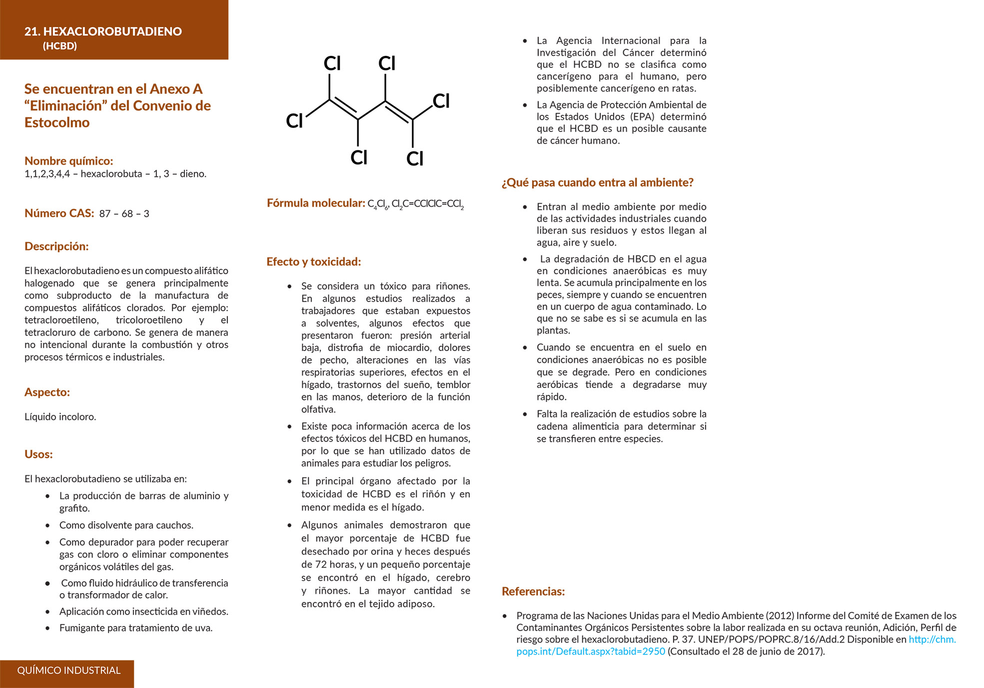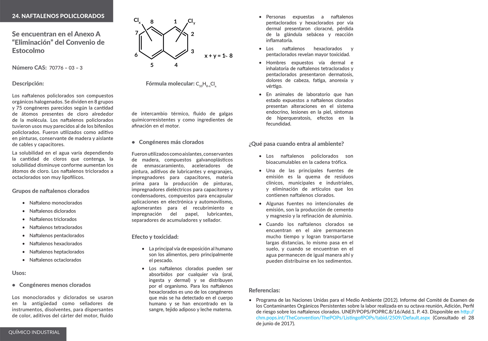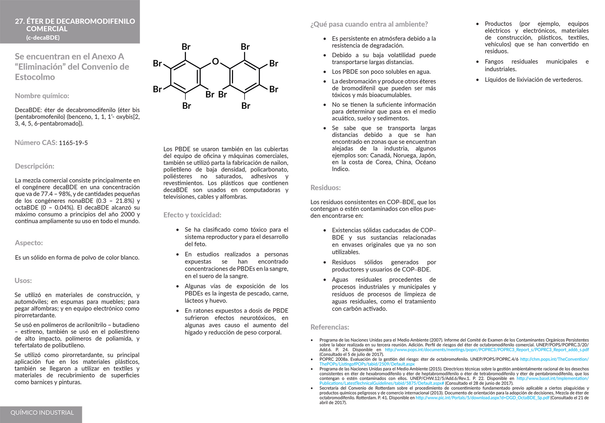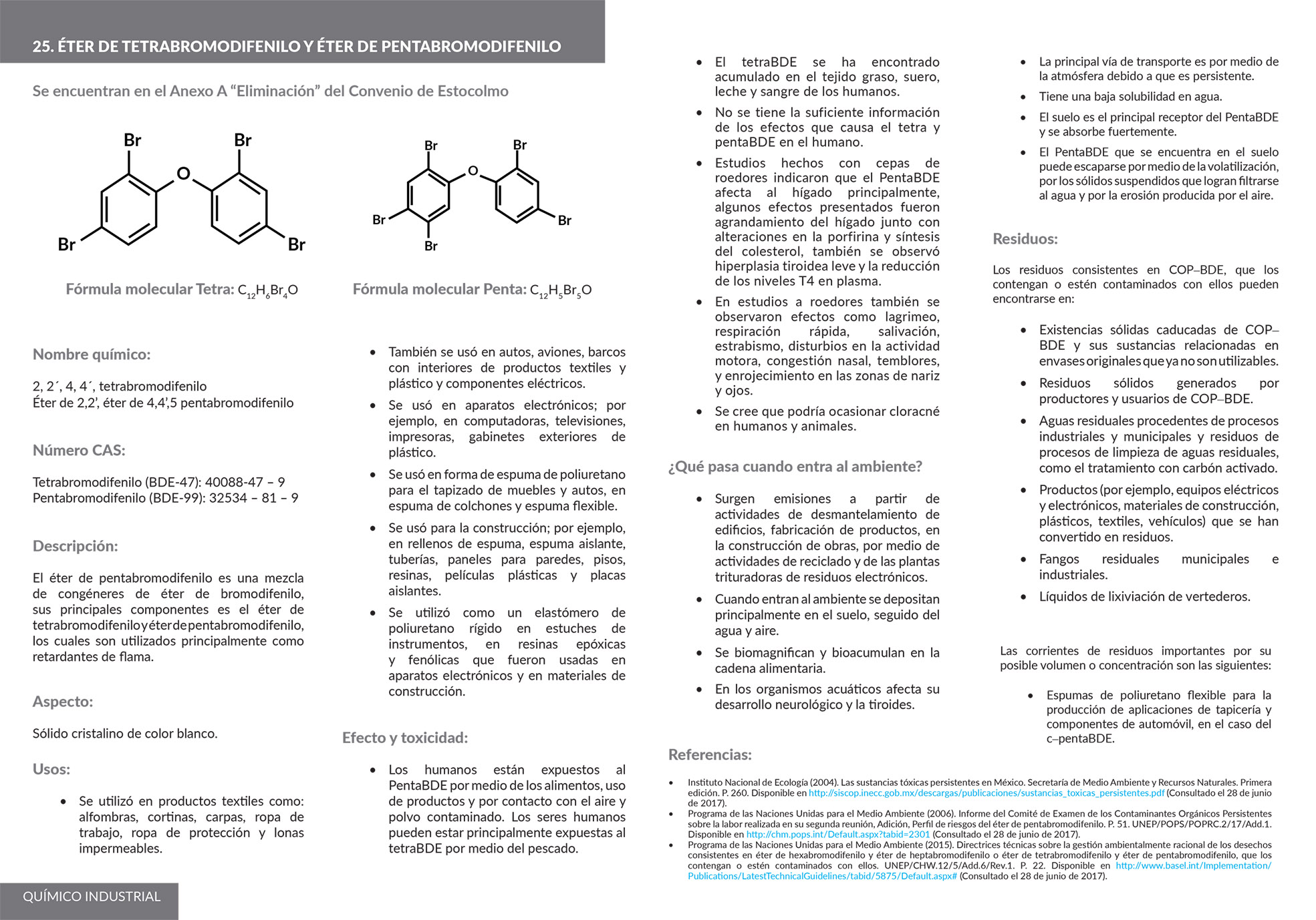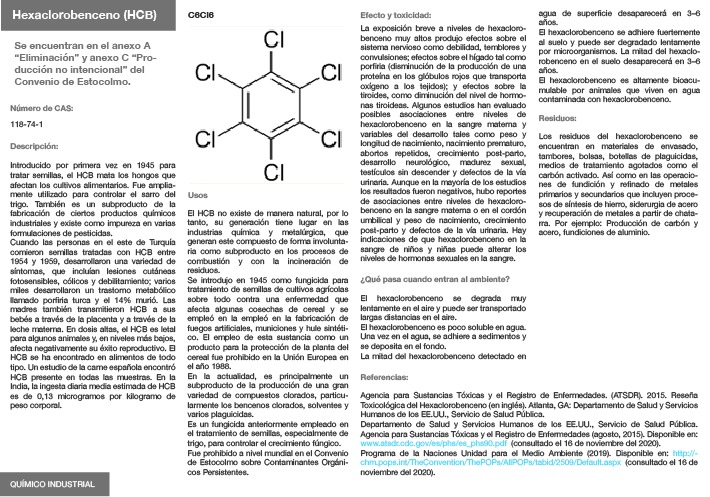 Los contaminantes orgánicos persistentes (COP) son sustancias químicas altamente tóxicas, que perduran muchos años antes de degradarse, acumulándose en el tejido graso de los seres vivos.